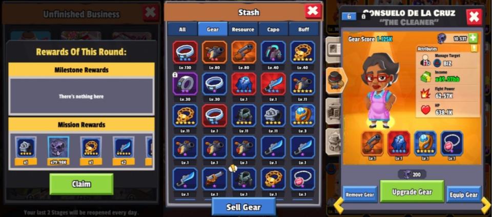 بعد الانتهاء من المرحلة (أو عند نفاد المؤقت) ، ستتم مكافأتك بعتاد و أحجار اوميرتا اعتمادا على عدد المهام التي أكملتها. يمكن تجهيز قادتك بالعتاد، مما يمنحهم بعض المواهب (على سبيل المثال زيادة الدخل أو زيادة قوة القتال). ويمكن استخدام أحجار اوميرتا لترقية العتاد. لاحظ أن الخواتم والقلائد ذات النجمتين أو أكثر ستحصل على مكافأة إضافية فريدة. يمكن تجهيز العتاد وترقيته وإزالته على صفحة تعريف القائد.